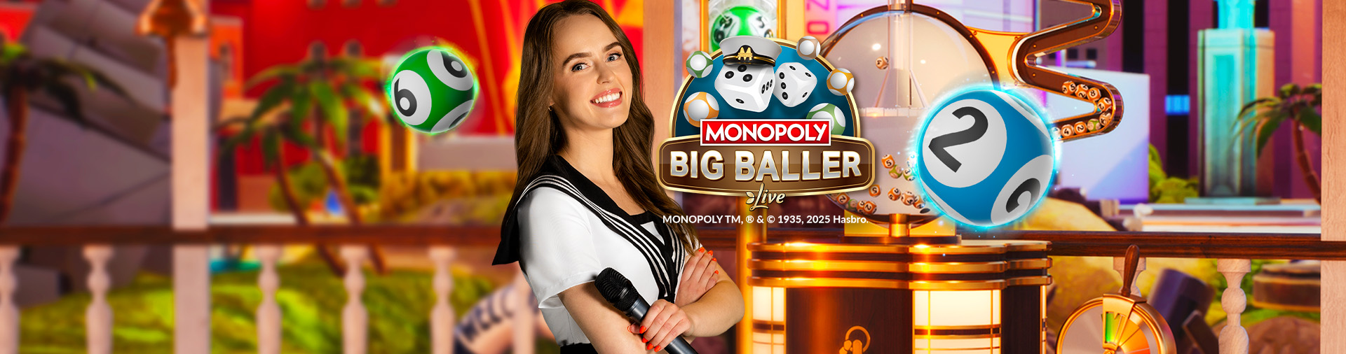 Eccoci a bordo di Live Monopoly Big Baller! L’azione su questa nave ruota attorno a una macchina per estrazioni in stile tombola.