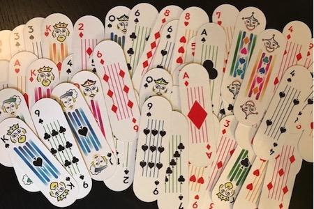 E’ possibile trovare carte a forma ellittica (come quelli nella foto sopra), carte a forma di animali o personaggi dei cartoni animati e carte a forma di palloni o scudi. C’è un cosiddetto “mazzo storto” di carte che vengono piegate un paio di volte per assomigliare alla lettera “S.”