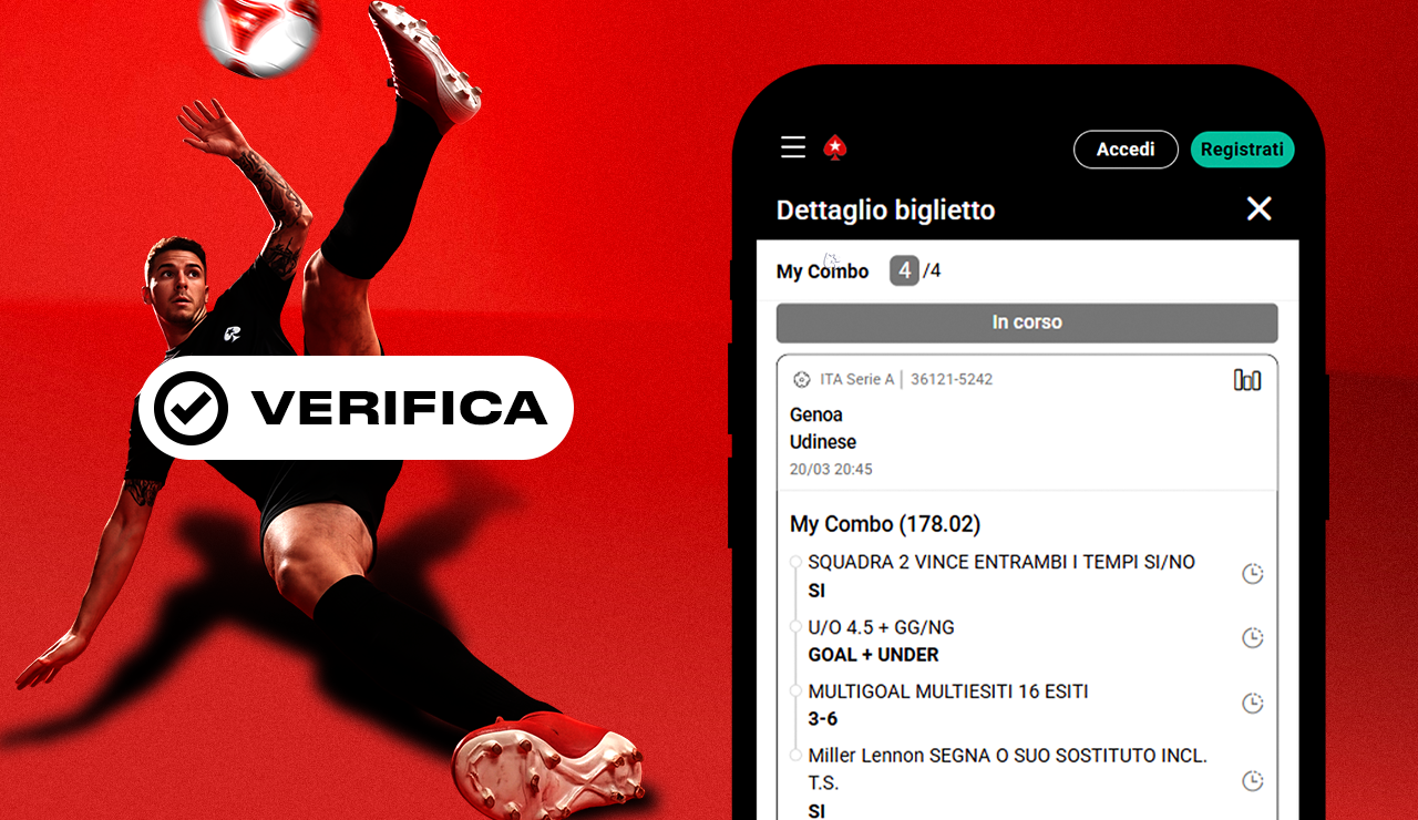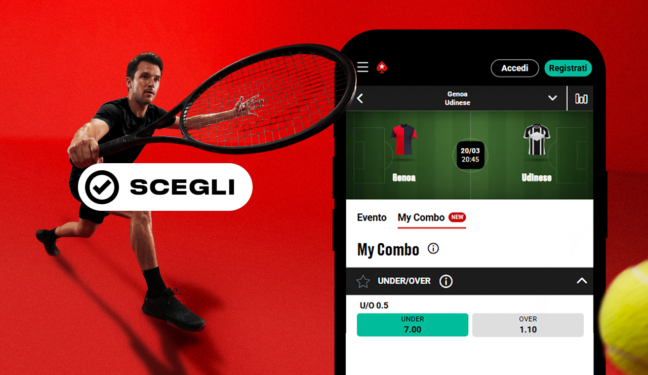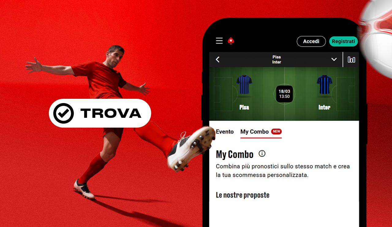Con My Combo la strategia di gioco è totalmente nelle tue mani: puoi combinare più mercati, anche correlati tra loro, di uno stesso match come il risultato finale, i marcatori, il numero di cartellini, i calci d'angolo e tanto altro, tutto all'interno di una singola scommessa.
